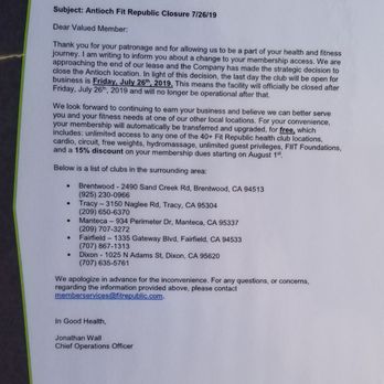 Why are you still taking money out of peoples accounts when you are closed. D fit republic u membership provides the same access as a premium membership plus unlimited fit republic classes and guest privileges all week long for 1 free guest when accompanied by a fit republic u member. 51 reviews 209 707 3272 website. See club for details.