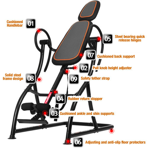 Page 1 inversion table model 8514it product manual version 02 16 02 for ages. Please take time to review the contents of the product you have just received to make sure that all of the parts are included. Secure them according to the manufacturer s. Pull pin long and short reversed.